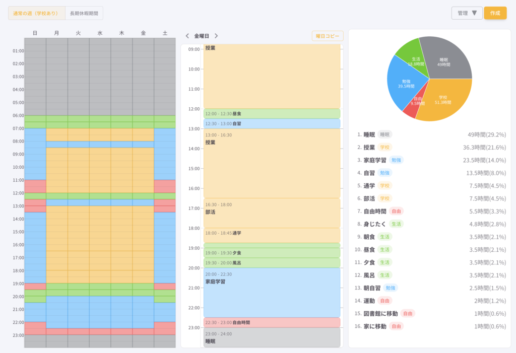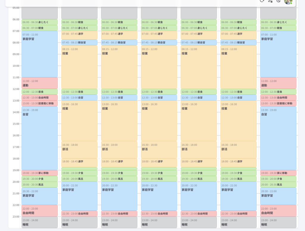 複数のデザインを保存しておけるので、「普段の1週間」と「試験1週間前」を別々に設計して切り替えることができます。