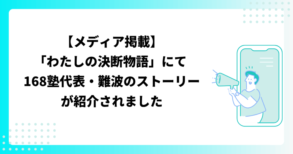 【メディア掲載】「わたしの決断物語」にて 168塾代表・難波のストーリーが紹介されました