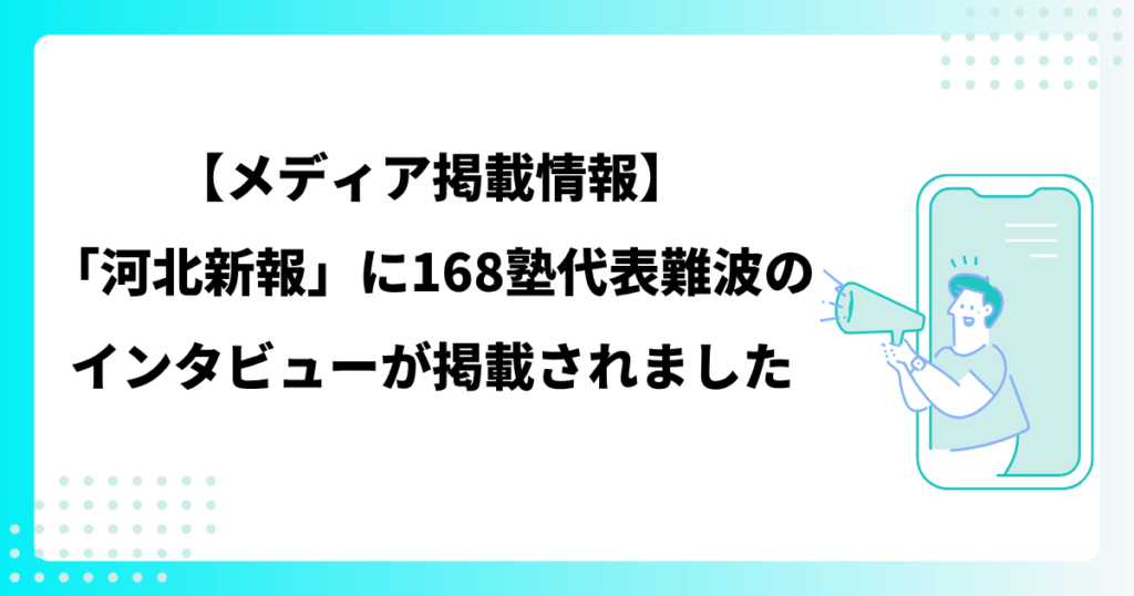 【メディア掲載情報】河北新報に168塾代表難波のインタビューが掲載されました